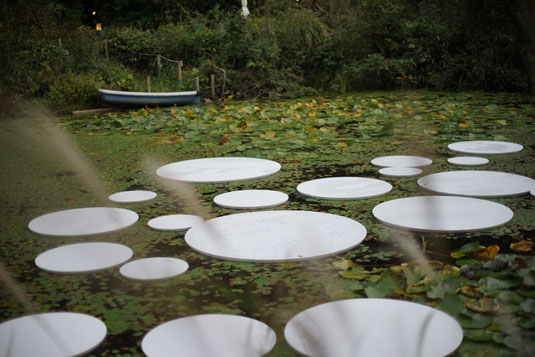 夜になると円板に海の映像が投影し、非日常的空間が演出されるのだそうです。